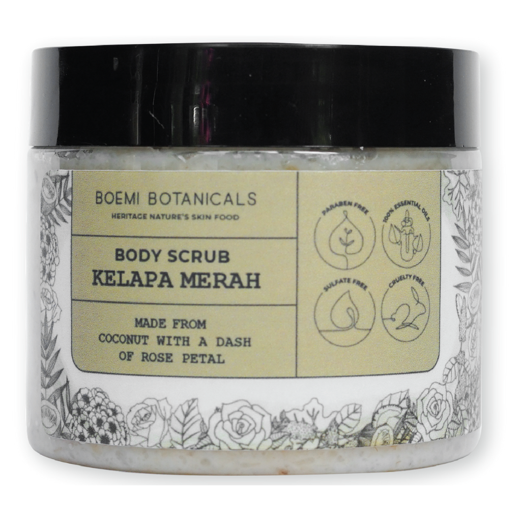 Indulge your skin in a gentle exfoliating ritual with BOEMI Botanicals Natural Body Scrub Kelapa Merah, a rich, moisturizing body scrub inspired by tropical island traditions. Formulated with coconut oil, shea butter, and honey, this creamy scrub helps soften and condition the skin, leaving it feeling smooth, supple, and comfortably hydrated after rinsing.