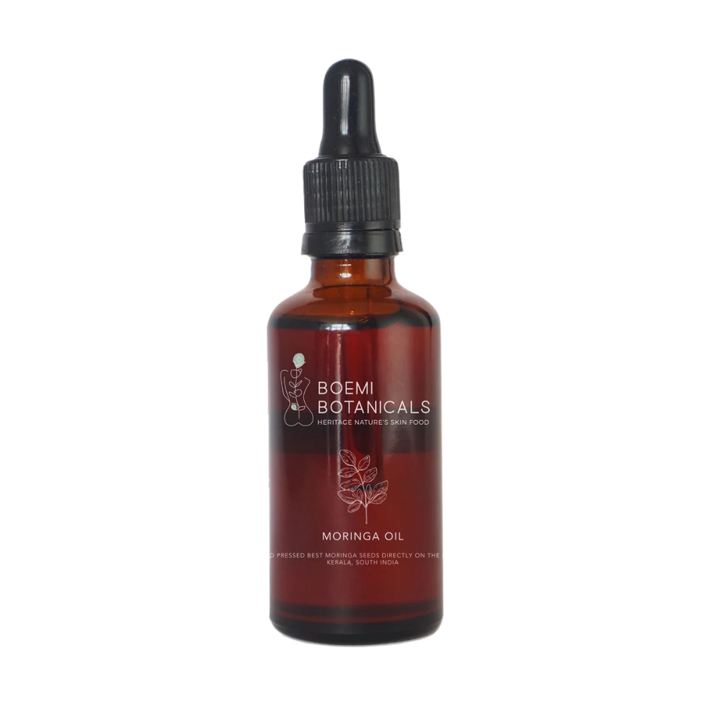 Discover the versatility of BOEMI Botanicals Moringa Oil, a lightweight, multi-purpose carrier oil suitable for both skin and hair care. Rich in Oleic Acid, Behenic Acid, and Vitamin E, this plant-derived oil helps nourish, hydrate, and support overall skin and scalp comfort.