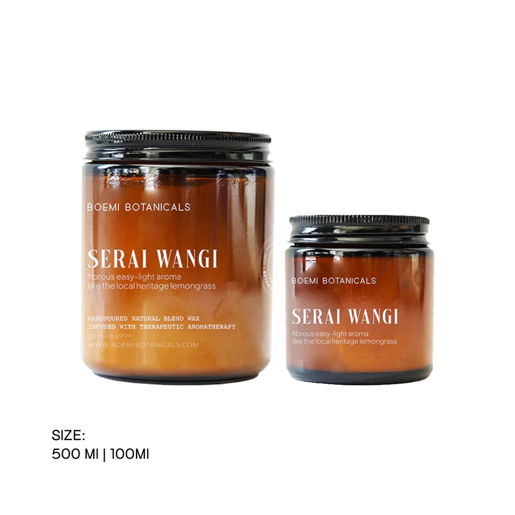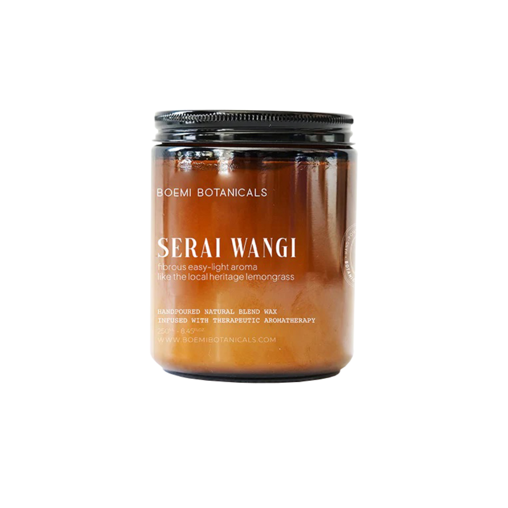 Bring a fresh, nature-inspired atmosphere into your space with BOEMI Botanicals Scented Candle Serai Wangi, a scented candle crafted to enhance your home with a clean, familiar botanical aroma. Made with natural palm wax and infused with 100% essential oils, this candle delivers a clean, steady burn suitable for everyday indoor use. The Serai Wangi aroma features a fibrous, crisp character inspired by local lemongrass heritage, offering a light and refreshing aromatic presence that complements daily living spaces. Designed for moments of pause, home rituals, or simple enjoyment, this candle brings a natural touch to your surroundings.