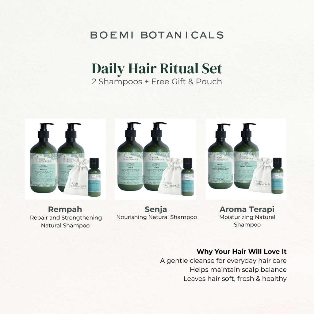 A daily hair care ritual made with natural-based products, formulated using selected natural ingredient shampoos. Gently cleanses the hair, helps maintain scalp balance, and delivers a calming and refreshing hair care experience for everyday use.