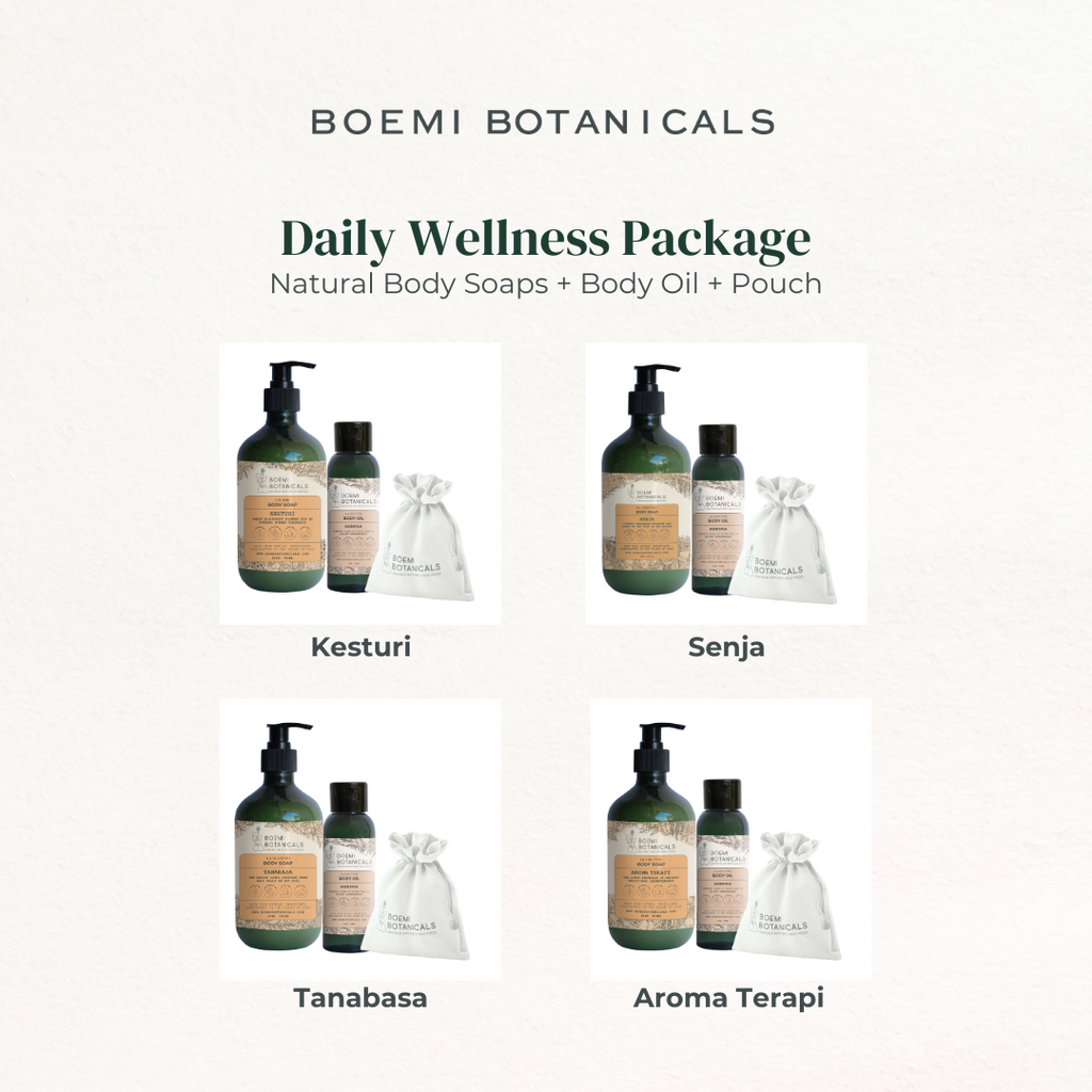 A daily body care ritual crafted with natural-based products, designed to cleanse, nourish, and help maintain skin moisture. The combination of body soap and body oil creates a calming wellness experience, leaving skin feeling softer, healthier, and comfortable throughout the day.