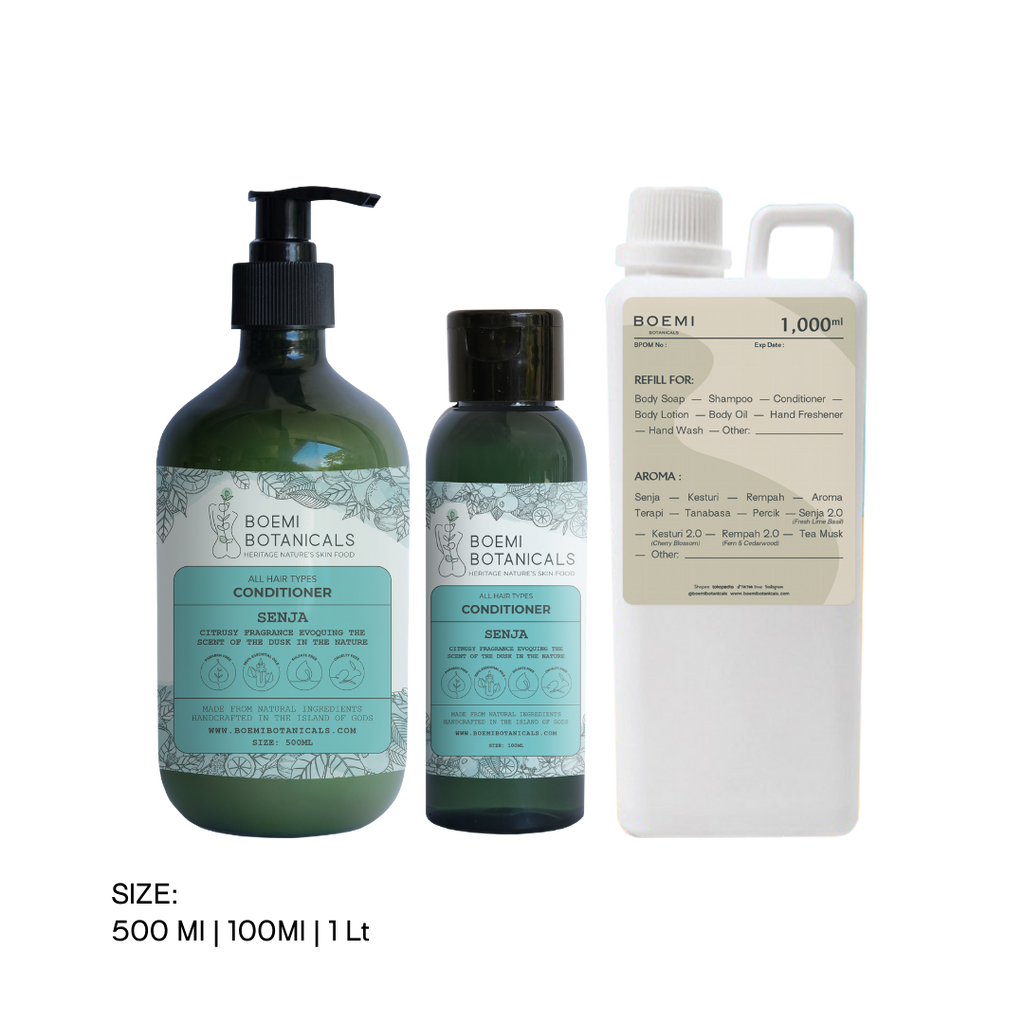 Experience gentle daily hair care with BOEMI Botanicals Natural Conditioner Senja, a lightweight conditioner formulated to help soften, smooth, and detangle hair without weighing it down. Crafted with a nourishing blend of Soya Oil, Shea Butter, Olive Oil, and Castor Oil, this conditioner helps maintain hair moisture and manageability, leaving hair feeling smooth and comfortable after each use. Enriched with Aloe Vera Extract, Hibiscus Tiliaceus (Daun Waru) Extract, and Panthenol (Vitamin B5), it supports healthier-looking hair with a natural shine. The Senja aroma combines fresh citrus and soft woody notes for daily hair care.