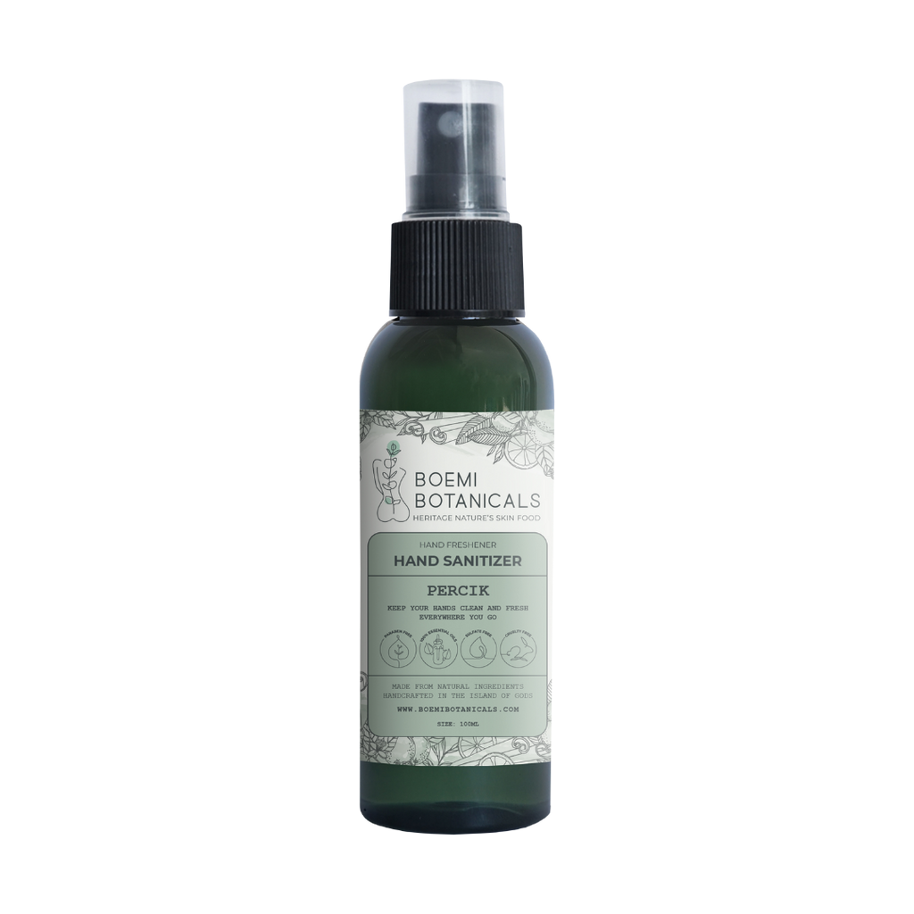 A daily hand care ritual. BOEMI Botanicals Hand Sanitizer “Percik” is a natural hand sanitizer designed to keep your hands feeling clean, fresh, and cared for after daily activities. Crafted with 100% Cinnamon & Lime essential oils, it gently cleans while keeping skin soft, comfortable, and hydrated, without any sticky or dry residue. Its naturally refreshing aroma transforms hand care into a simple, uplifting self-care ritual.